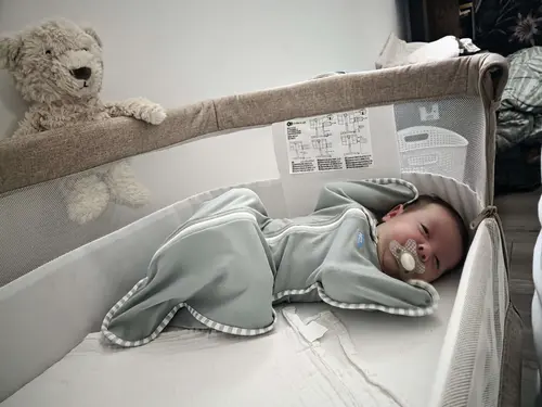 Je kindje kan makkelijk hier in blijven slapen. Zodra hij echt gaat rollen, zou ik de zijkant omhoog ritsen. Wanneer hij zich gaat optrekken/opdrukken, dan ga je over naar een ledikant. Maar dit is vaak met 6 maanden.