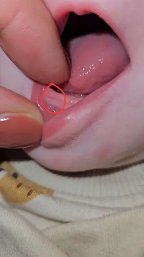 Kan ik op de foto niet beoordelen. Is het echt hard? Een tandje is echt hard en inderdaad lichter, vaak iets breder (maar ik kan het niet goed zien). Je komt er vanzelf achter. Mij kids waren 2,5 maand en net 3 maand toen ze tandjes kregen. Onderin.