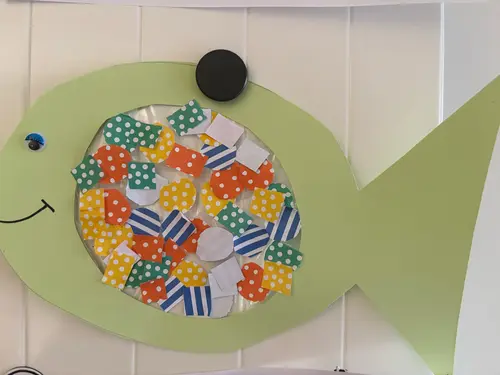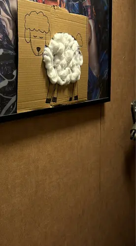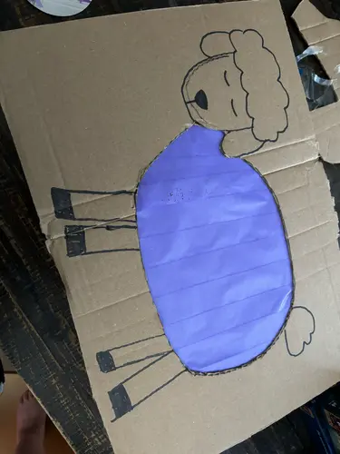 -Schaapje op karton tekenen en gat eruit snijden en daar aan de andere kant tape plakken. Kindje daarna met wol laten plakken