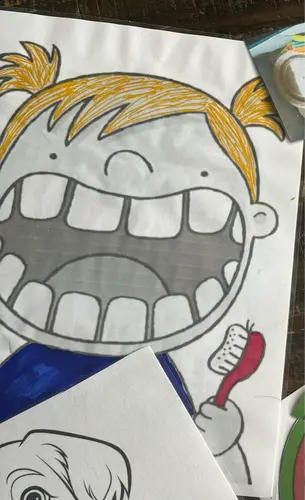 - teken beestjes en viezigheid op de tanden met stift en laat haar die daarna tandenpoetsen .