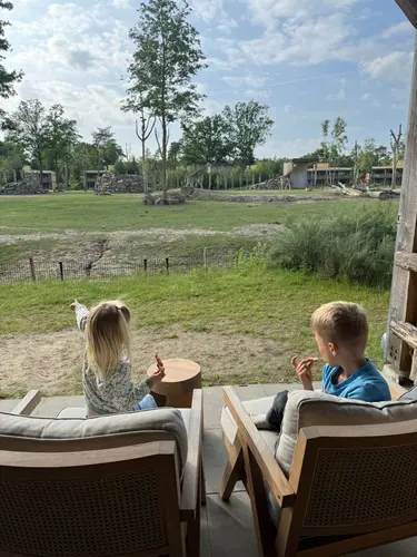 Zoon en dochter hadden een eigen slaapkamer en wij sliepen met onze jongste in de grote kamer met uitzicht op de Savanne. ‘s morgens lekker ontbijten in het restaurant en de kamer werd elke dag schoongemaakt. Top! Ook centraal gelegen en vlakbij de ingang van het safaripark zelf. Je kan lopend naar binnen, maar wij gingen met de auto.