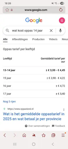 Wij hebben nog geen oppas nodig, 20 jaar geleden(😅) kreeg ik zelf 10 euro per uur voor 2 jongens (2&4) incl naar bed brengen. Eten hadden ze wel altijd op. Ik woonde 2 straat verder en vader van het gezin bracht mij altijd lopend weer thuis. Drinken / snackie legden ze klaar zodat ik niet zelf alle kasten open hoefde te trekken, dat vond ik wel zo prettig.