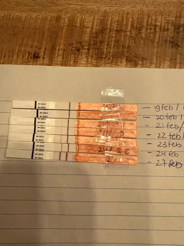 Nou heb net toch een test gehaald en ik zie gewoon weer binnen de tijd een streep maar echt niet veel meer. Wellicht toch een chemische zwangerschap, echt weird? Maar indroog kan het echt niet zijn, maar heb het nu met elke test…