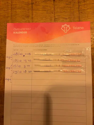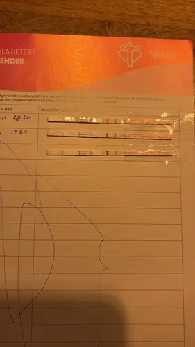 Ik heb nog 5 dagen doorgetest nu, maar hij werd niet meer donkerder. Dus of ik heb hem net gemist en was een hele korte piek ergens tussen in. Ik heb namelijk wel ovulatiepijn gevoeld.