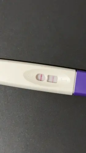 Een ovulatietest is alleen positief als de teststreep even donker of donkerder is dan de controlestreep. Deze is dus negatief. Zoals hcg wel stabiel oploopt als je zwanger bent, zo werkt het niet met LH, wat een ovulatietest meet. Dit gaat op en neer. Deze test zegt dus helemaal niks, misschien word je morgen gewoon ongesteld, misschien niet. Hopelijk kun je er wat mee!