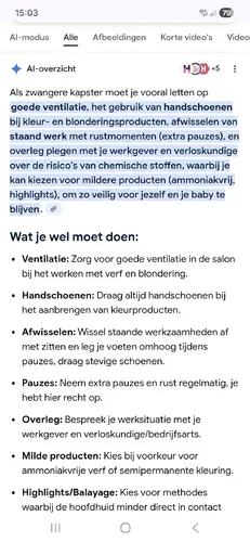 Chatgpt zegt dat een zwangere kapster wel mag verven maar met goede handsch ...