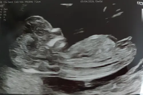 Hier nog iemand die heel nieuwsgierig is :) echo is met precies 13 weken. Wat denken jullie? De echoscopiste heeft de nub expres goed op de foto gezet maar wilde niks zeggen