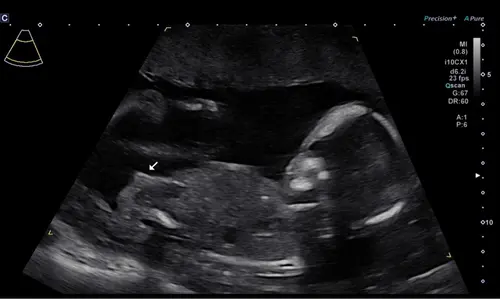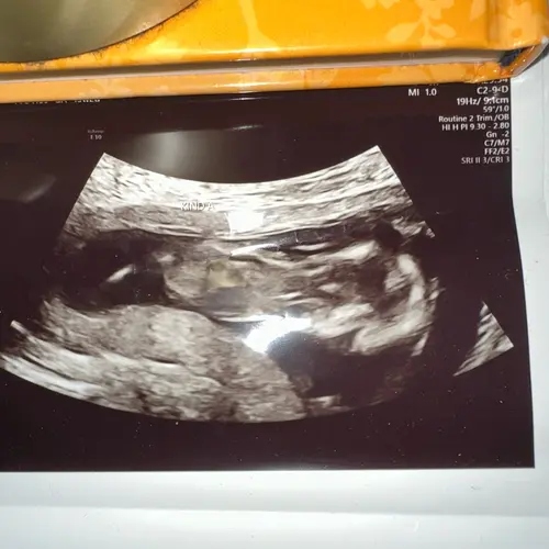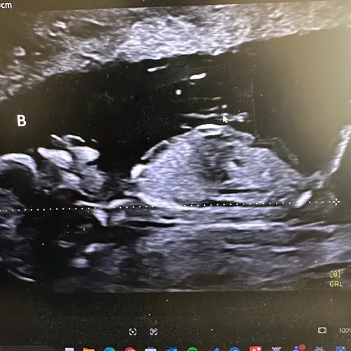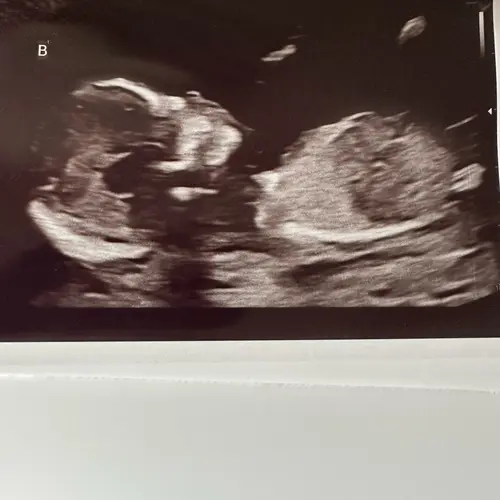Ook niet goed te zien helaas.. zie je niet rechts bij de beentjes op een andere foto een betere met een witte streep?