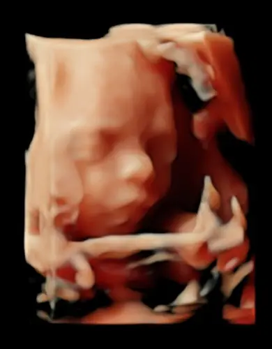 Met 20 en 24 weken zijn die best redelijk gelukt, maar meneer lag dus lekker te pitten en had geen handen voor zijn gezicht
