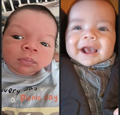 Hier zijn de ogen alleen maar lichter geworden na de geboorte 😁 eerst donker blauw , nu licht blauw.