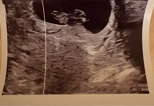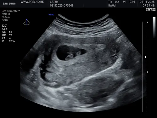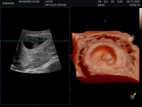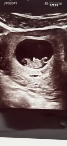 Heb je nog meer echo foto鈥檚, bij deze is het lastig te zien. Gaat er om hoe je kleine geloof ik in het vruchtzakje zit.
