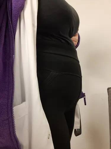 Deze foto heb ik gister gemaakt op het werk. Precies 6 weken zwanger! Een cliënt vroeg of ik zwanger was. Ik was helemaal overdonderd door deze vraag!