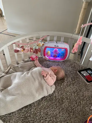 Wij hadden er eentje gekocht die blijkbaar niet uit zichzelf ronddraait. Omdat dat niet veel effect heeft nu alsnog een besteld die ronddraait (van little dutch).