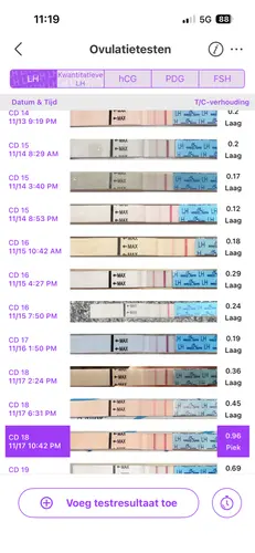 Bedankt voor je geruststelling! Ik ben nog nieuw met ovulatietesten en bij alle voorbeelden zie je zo鈥檔 stijgend lijntje. Dat het niet zo hoeft te zijn geeft veel rust!