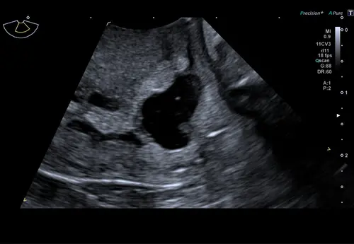 Ik heb veel onderzoek gehad door verschillende redenen en ik heb vaak verdikt slijmvlies, verdikte eileider etc. Ook heb ik verschillende cystes in zowel mijn baarmoeder als daarbuiten. Endomestriose bleek bij mij de oorzaak. En doordat het eitje niet altijd kan springen of niet goed kan springen wisselt bij mij m'n cyclus met regelmaat. Nooit een zwangerschapstest hiervoor gedaan dus dat weet ik niet.