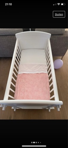 Wieg te koop,m. Geen beschadigingen, matras en hoes-moltons erbij. https://www.vinted.nl/member/67452667-lisanne270194