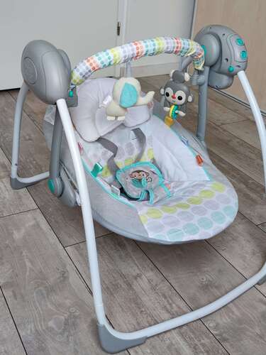 Zowel mijn kindje als mijn nichtje hebben zó veel plezier gehad van deze schommelstoel. Hij heeft een (niet al te irritant) muziekje (ook fijn voor papa en mama dus 😅). Vijfpunts gordel met beschermstofje, twee leuke speeltjes en meerdere snelheden. De batterijen doen het nog.